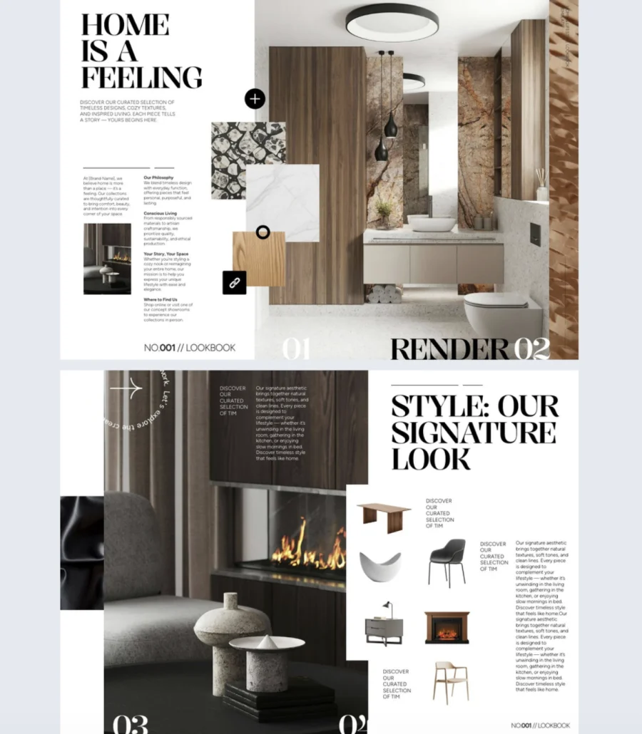 A product catalog lists items. A lookbook makes people want them. This template helps home and lifestyle brands present their collections in a clean, visual format that turns browsing into buying.