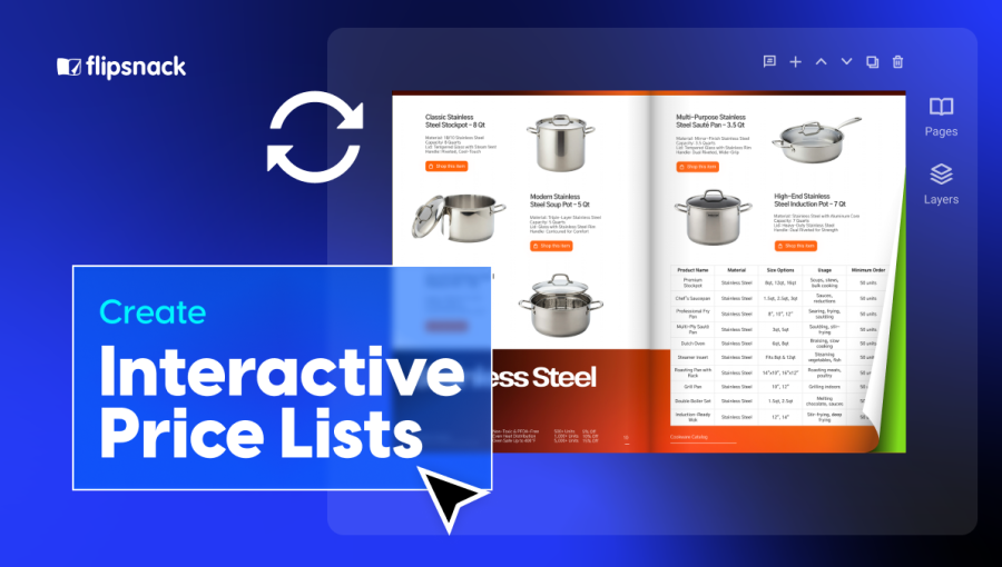 Interactive digital price lists are transforming how companies share pricing information. With Flipsnack, you turn a static price sheet into a dynamic, branded experience that’s fast to build, easy to update, and simple to use on any device. Below are the key benefits, plus how you can make each one possible with Flipsnack: