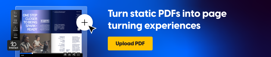 In a nutshell, a PDF page-turner is an online, interactive PDF-converted HTML5 publication (or flipbook). It looks like a real-life book because you can flip and turn its pages, providing a more authentic reading experience. Additionally, thanks to the interactive elements, you can even zoom pages, navigate or search within the document with the help of hyperlinks.