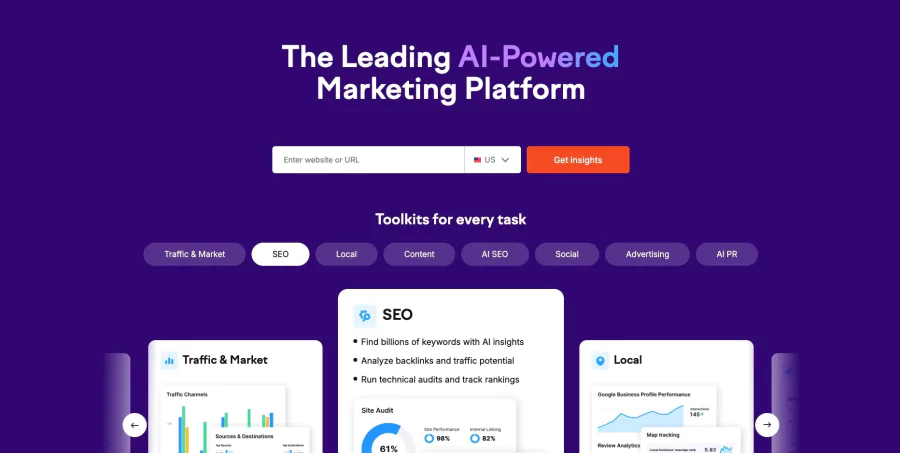 SEMrush remains a cornerstone for real estate marketers who need deep keyword research and SEO tracking. It helps professionals identify local search trends and optimize property-related blogs or landing pages for visibility as part of their SEO marketing strategy.