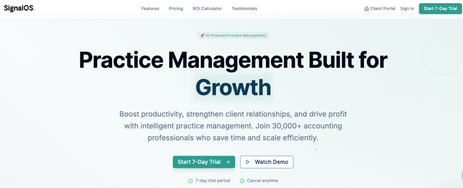 SignalOS is an AI-first practice management platform built for modern accounting firms that want to save time, strengthen client relationships, and grow profitably. It unifies client onboarding, task and project management, document collaboration, billing, and reporting into one intelligent system. With AI at its core, SignalOS goes beyond simple workflow tracking, it actively helps firms reduce compliance risk, optimize workloads, and gain real-time visibility into budgets and utilization.